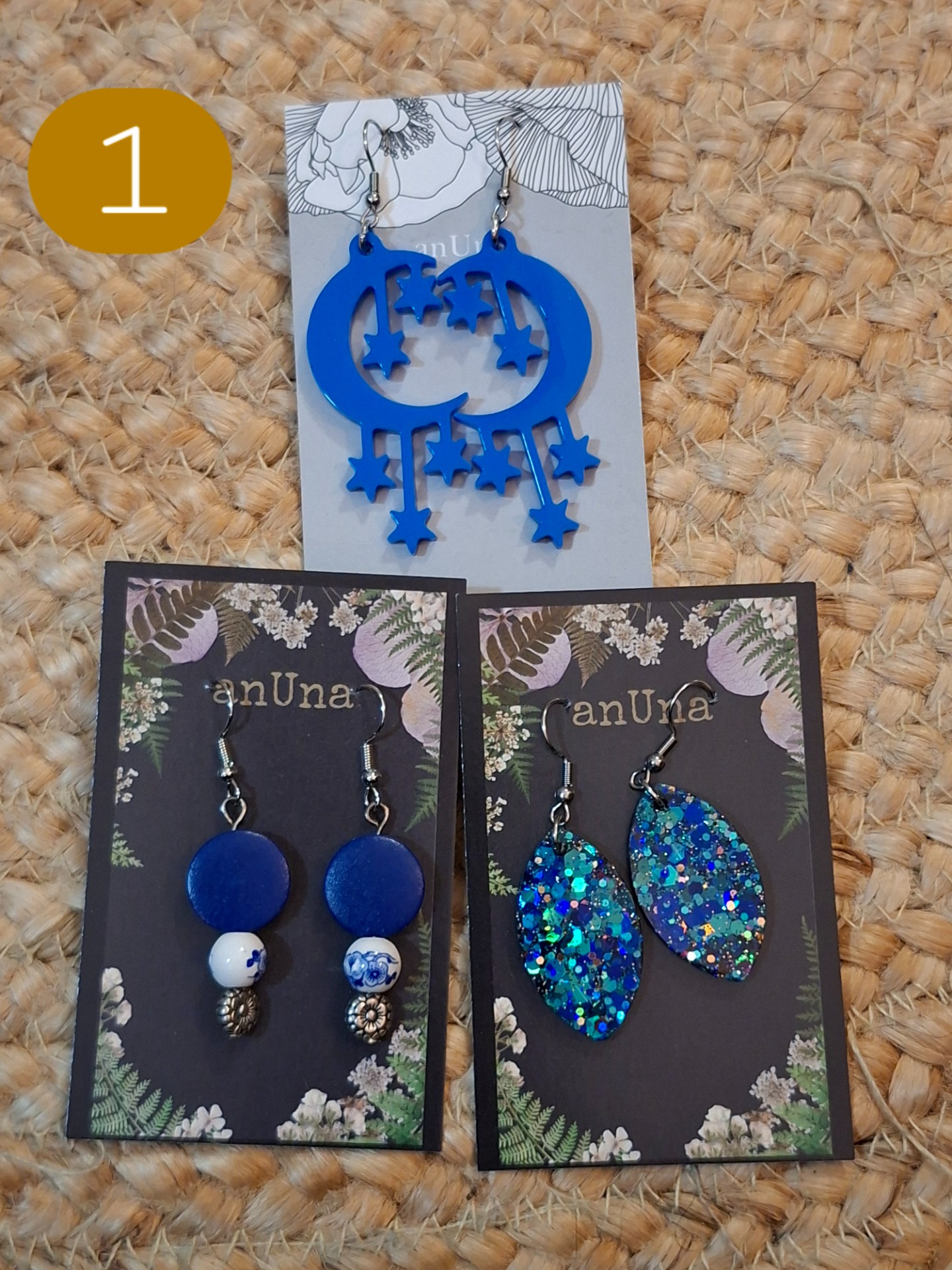 Kolmen parin setti korviksia ale-hintaan 15€. Postikulut kirjeenä 3e